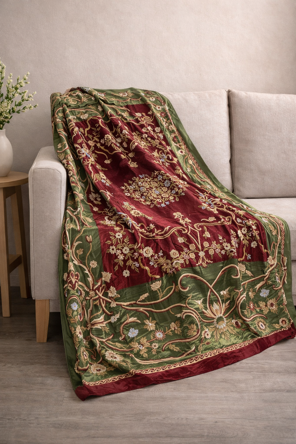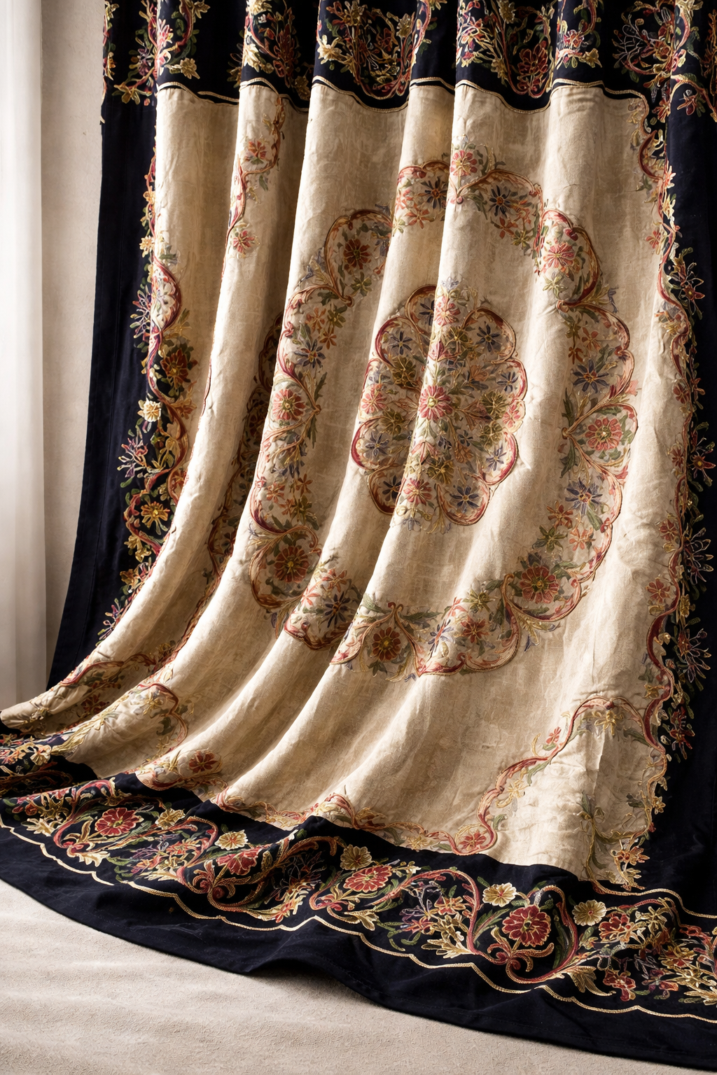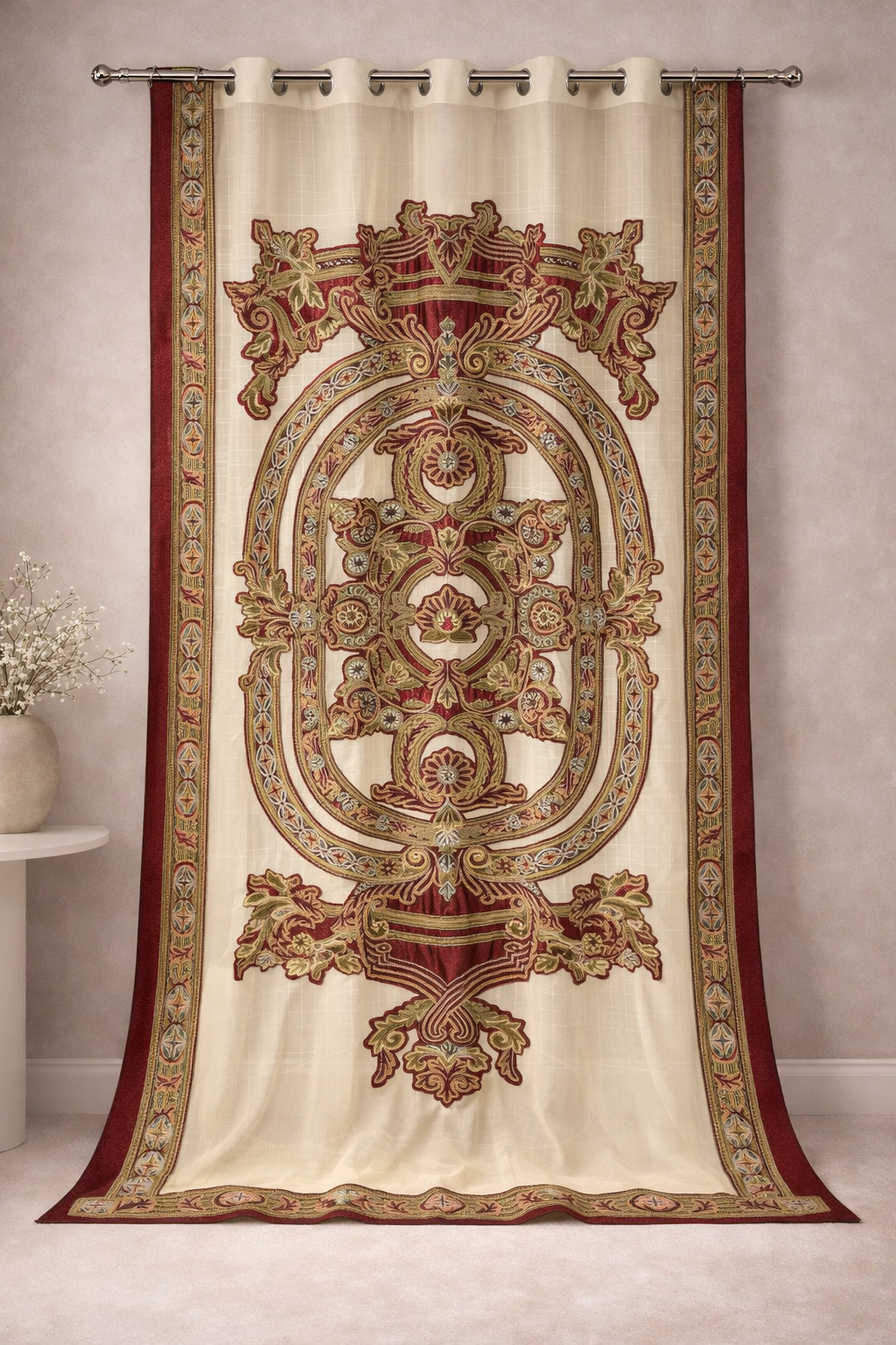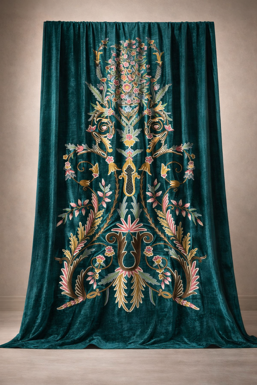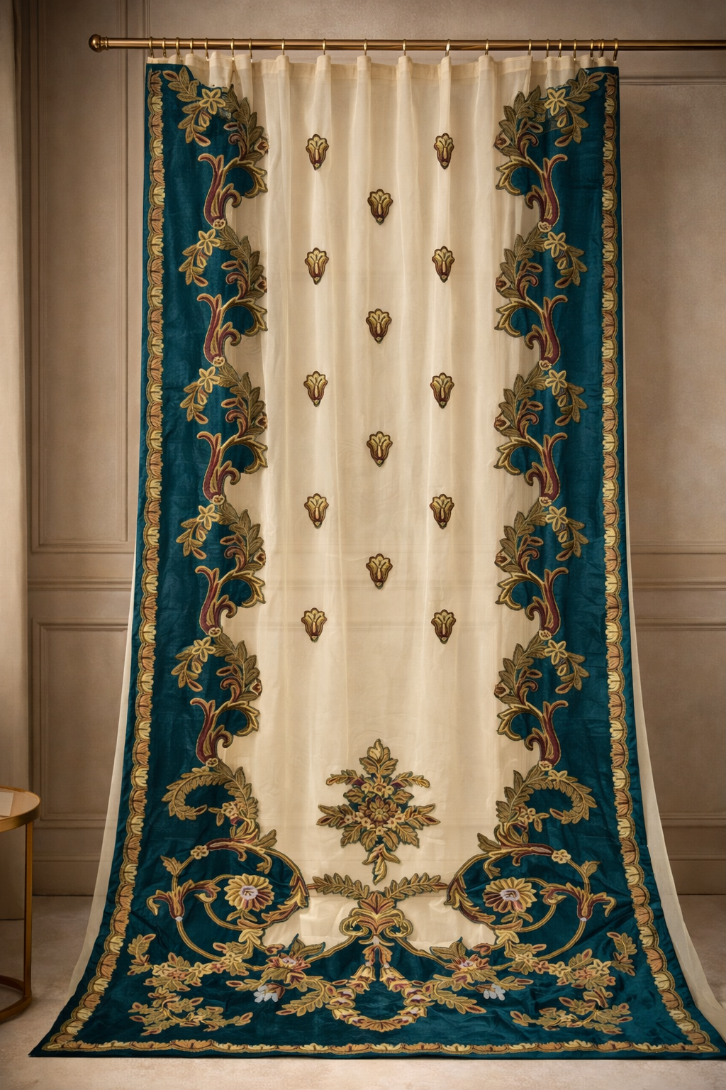 Rooted in Kashmir’s rich embroidery tradition, crewel curtains are defined by intricate hand-stitched motifs crafted with fine wool yarns. Set against natural fabrics, each piece brings depth, texture, and timeless artistry to contemporary interiors. Where heritage meets modern living, the craft is redefined for today’s spaces.