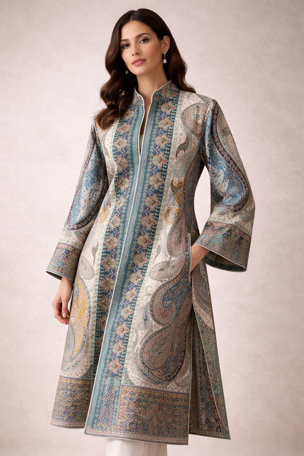 Rooted in the historic kani weaving tradition, Kashmiri kani coats draw inspiration from an art form that dates back several centuries. Originally used to create intricate shawls through meticulous weaving with wooden bobbins known as kanis, these elaborate patterns have been thoughtfully reimagined into contemporary outerwear. Each kani coat reflects artistic precision, cultural heritage, and a seamless balance between tradition and modern design.